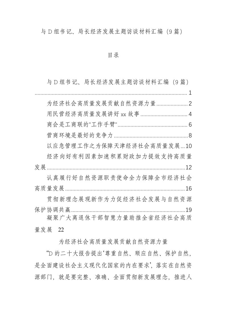 / 与党组书记、局长经济发展主题访谈材料汇编(9篇)