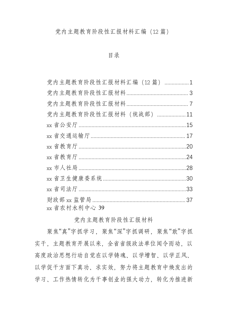 / 主题教育阶段性汇报材料汇编12篇