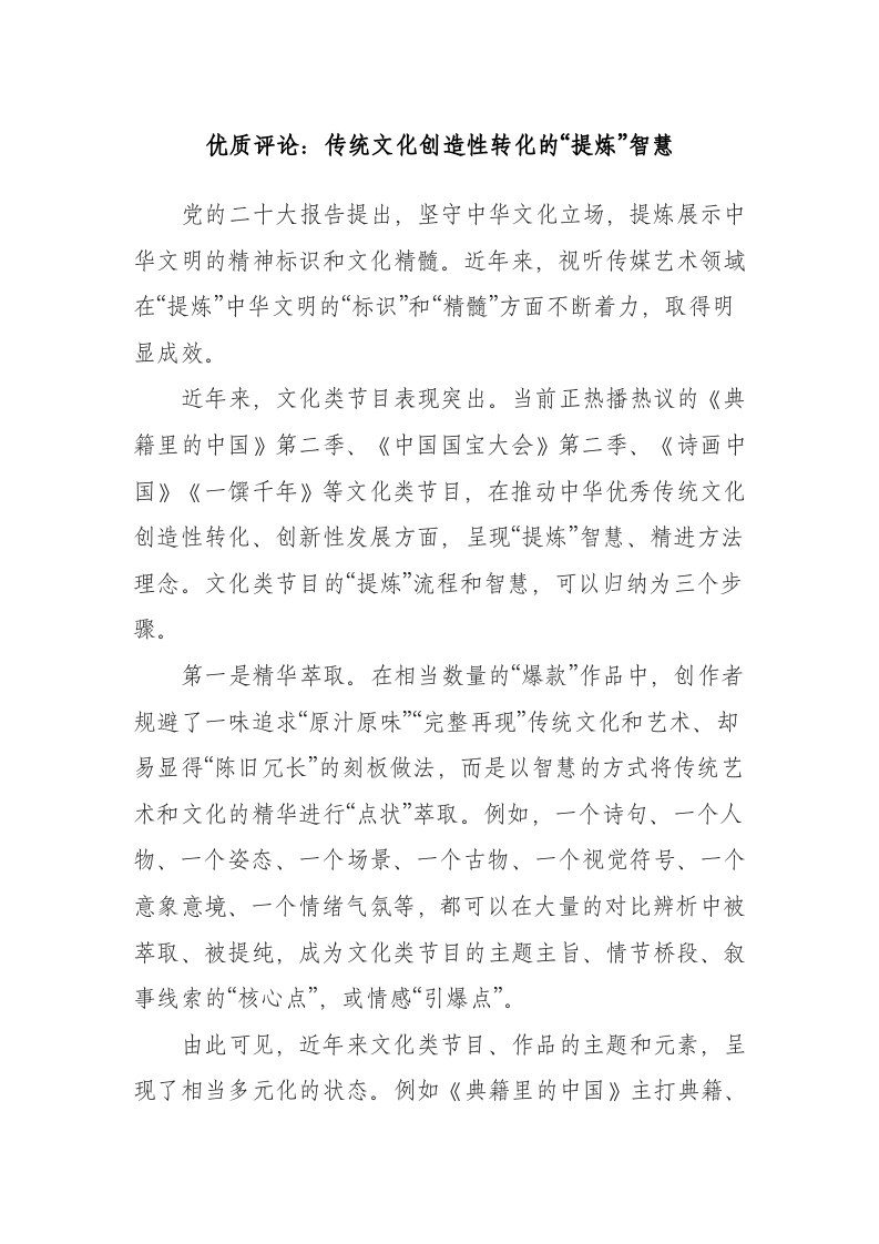 / 传统文化创造性转化的“提炼”智慧
