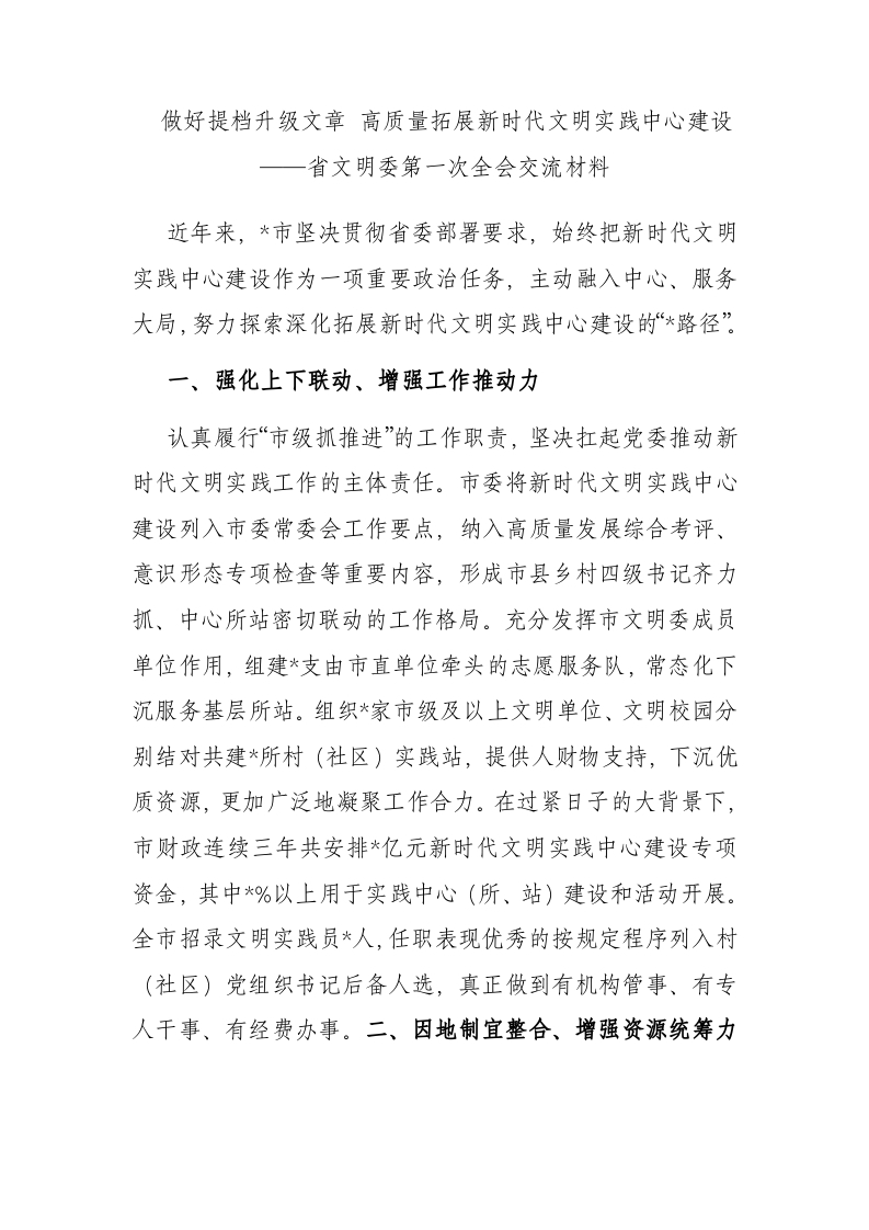 / 做好提档升级文章 高质量拓展新时代文明实践中心建设——省文明委第一次全会交流材料