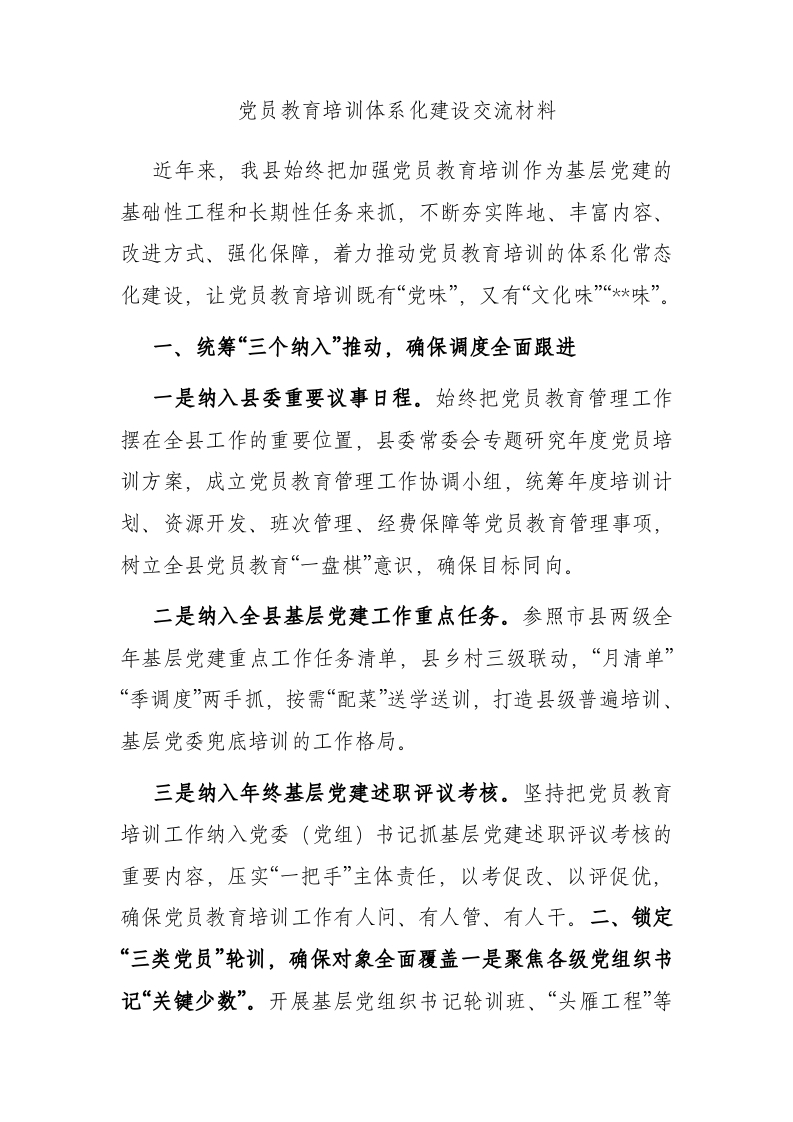/ 党员教育培训体系化建设交流材料
