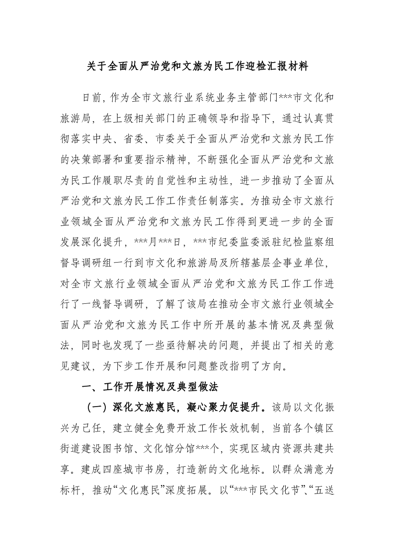 / 全面从严治党和文旅为民工作迎检汇报材料