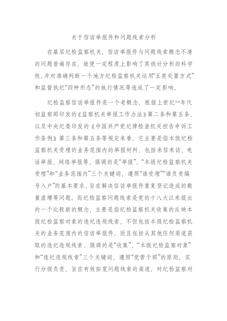 / 关于信访举报件和问题线索分析