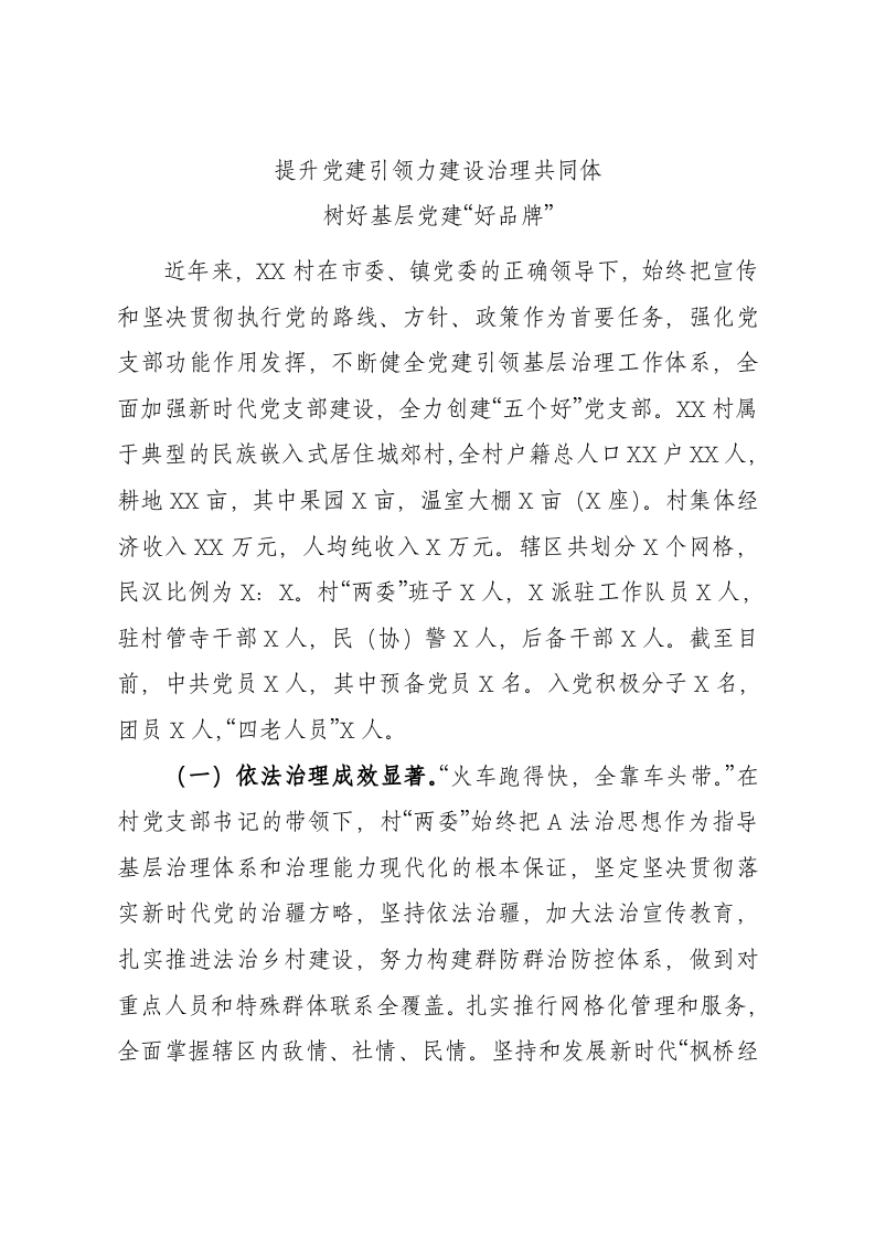 / 创建“五个好”标准化规范化党支部示范点考核评选材料(村)