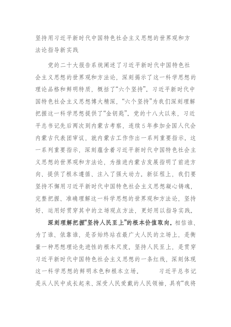 / 坚持用新时代中国特色社会主义思想的世界观和方法论指导新实践