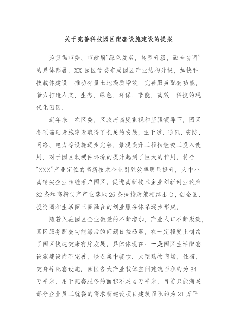 / 完善科技园区配套设施建设的提案