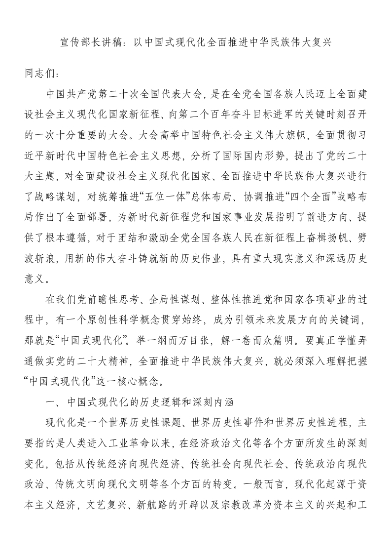 / 宣传部长讲稿:以中国式现代化全面推进中华民族伟大复兴