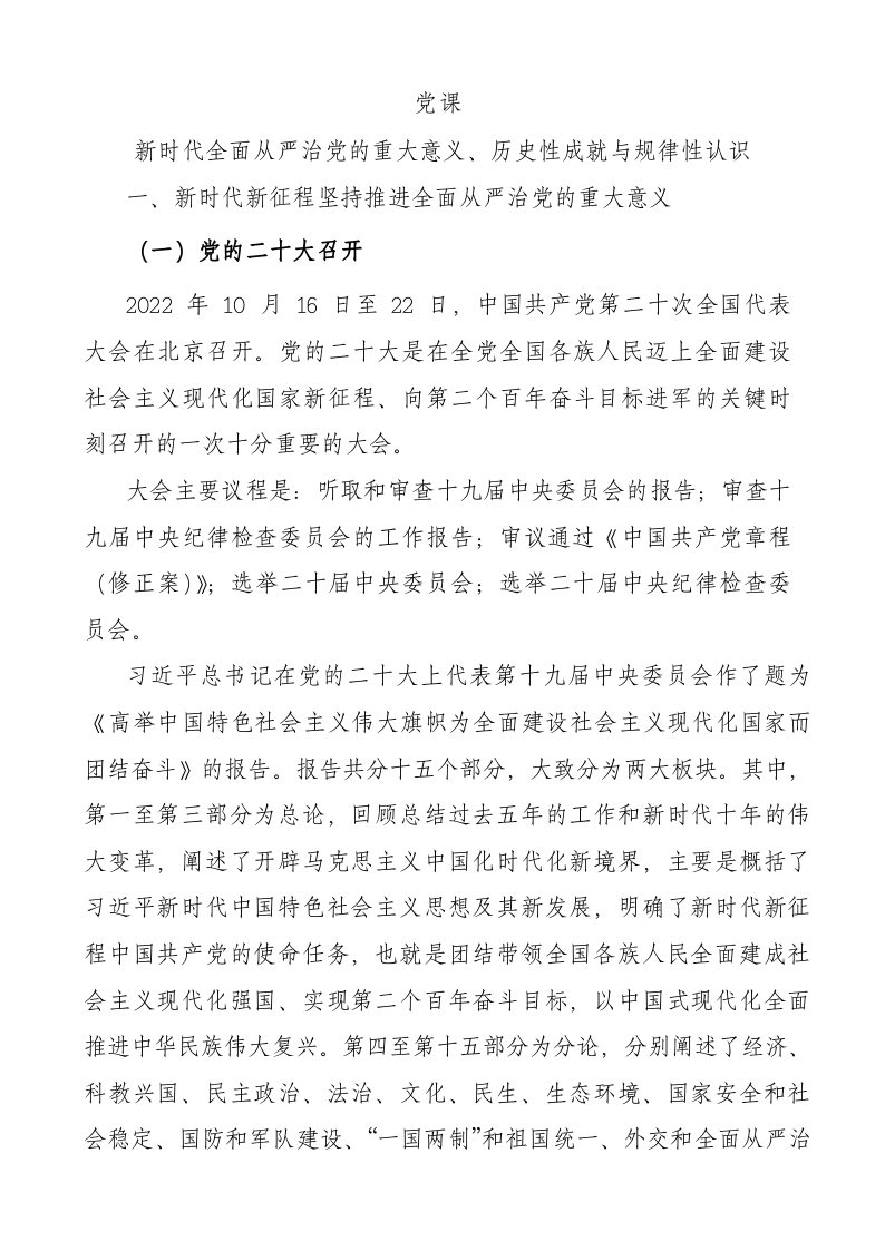/ 新时代全面从严治党的重大意义、历史性成就与规律性认识(11000字)