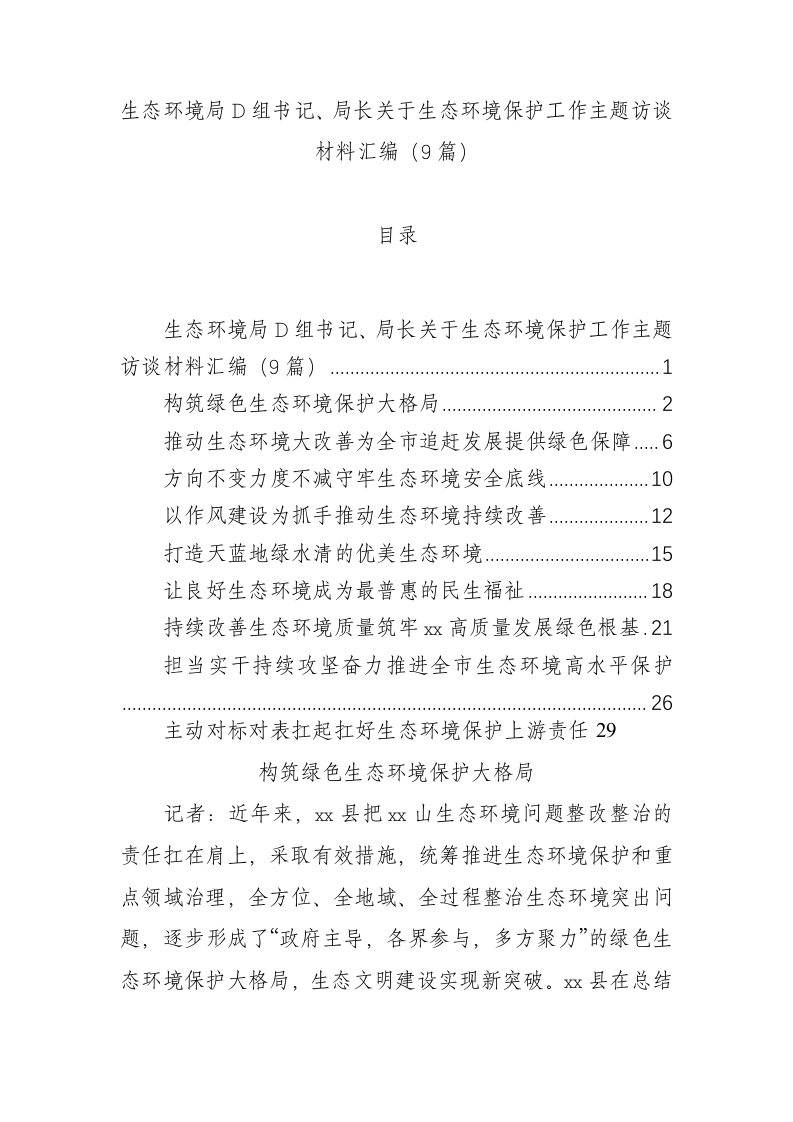 / 生态环境局党组书记、局长关于生态环境保护工作主题访谈材料汇编(9篇)