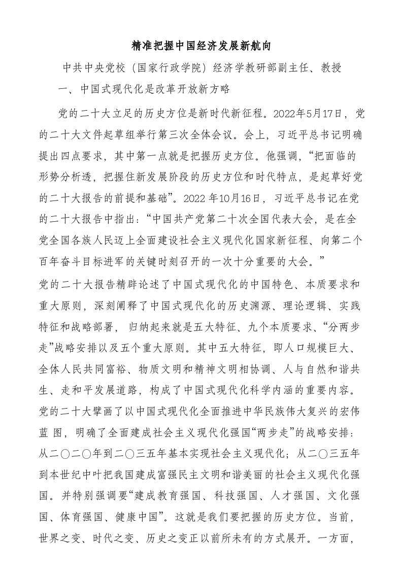 / 精准把握中国经济发展新航向(二十大学习材料)