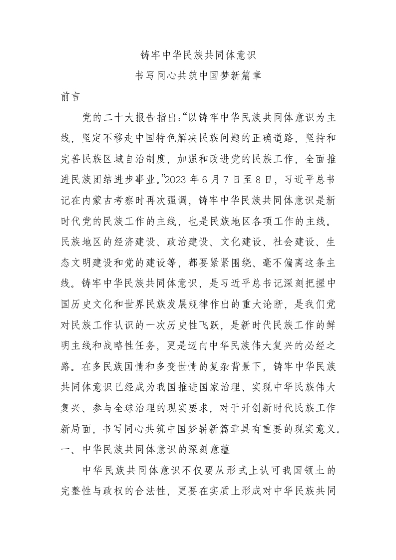 / 铸牢中华民族共同体意识书写同心共筑中国梦新篇章1万字