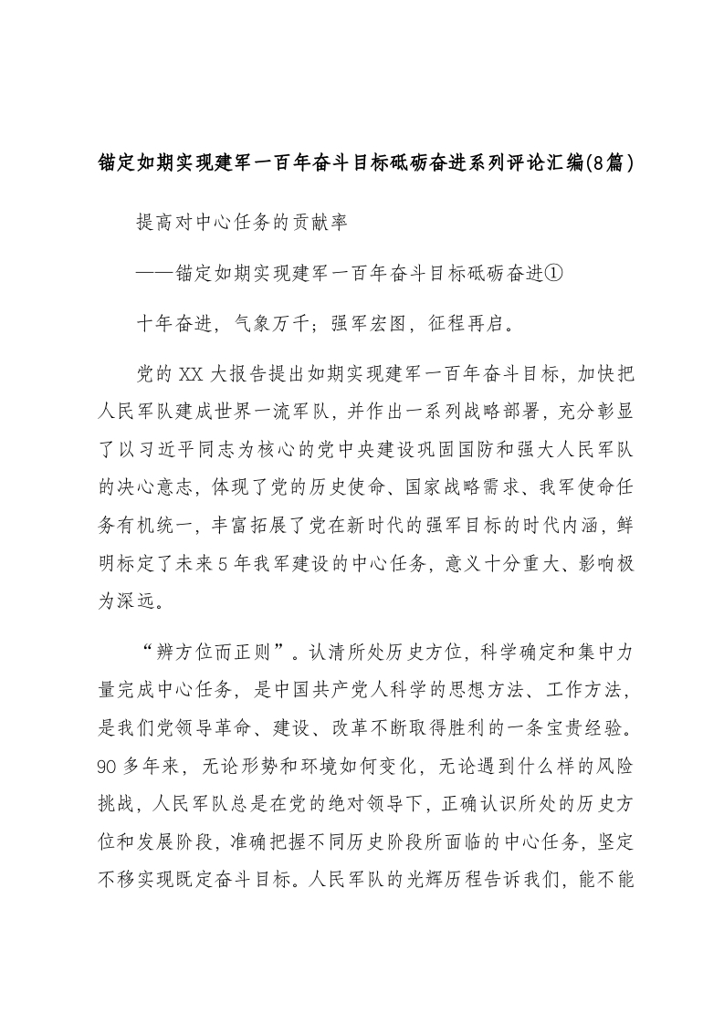 / 锚定如期实现建军一百年奋斗目标砥砺奋进系列评论汇编