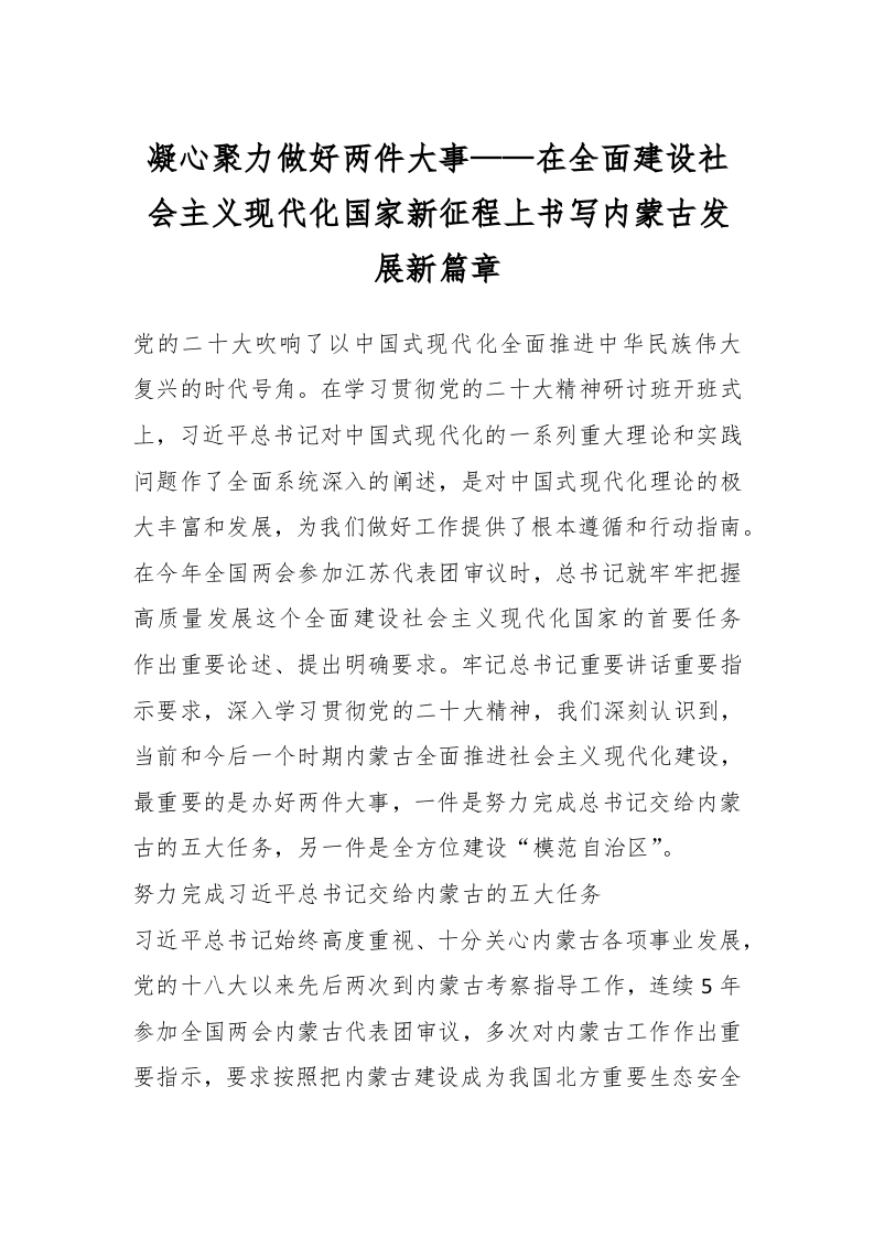 凝心聚力做好两件大事——在全面建设社会主义现代化国家新征程上书写内蒙古发展新篇章