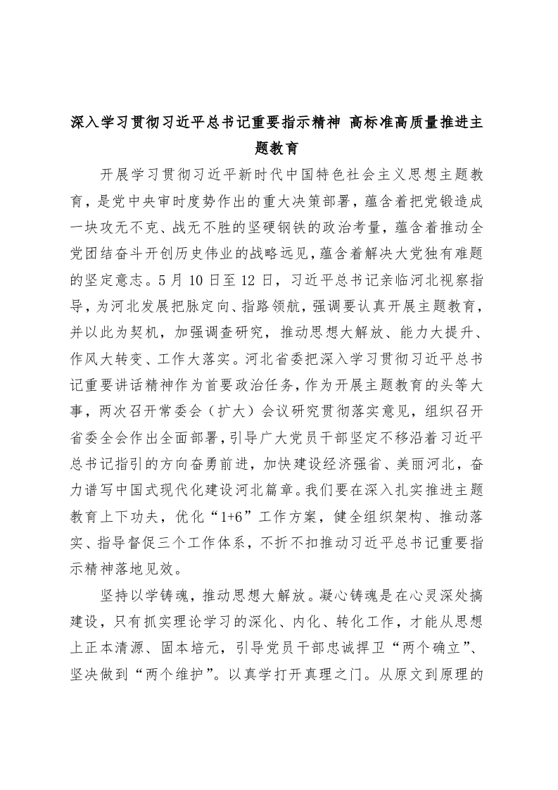 / 深入学习贯彻习近平总书记重要指示精神 高标准高质量推进主题教育