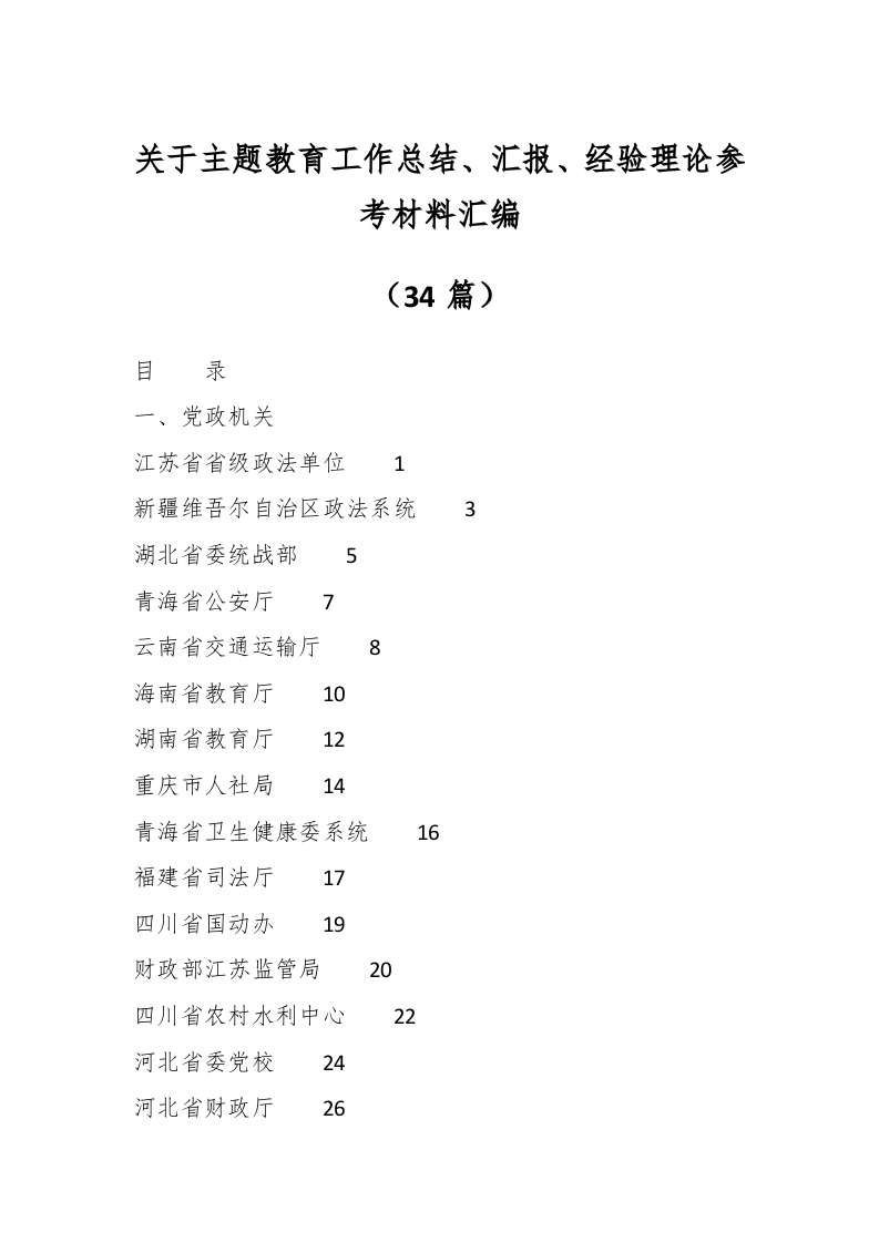/ (33篇)关于主题教育工作总结、汇报、经验理论参考材料汇编