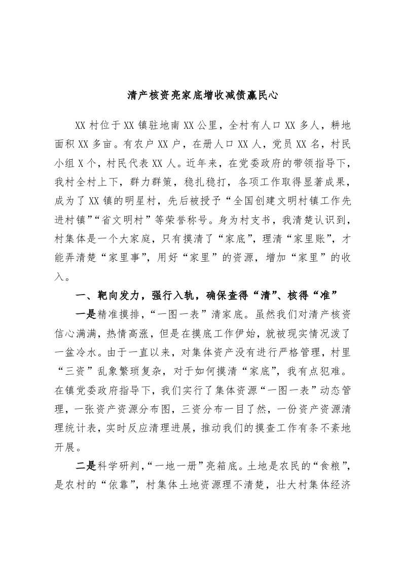 清产核资亮家底增收减债赢民心
