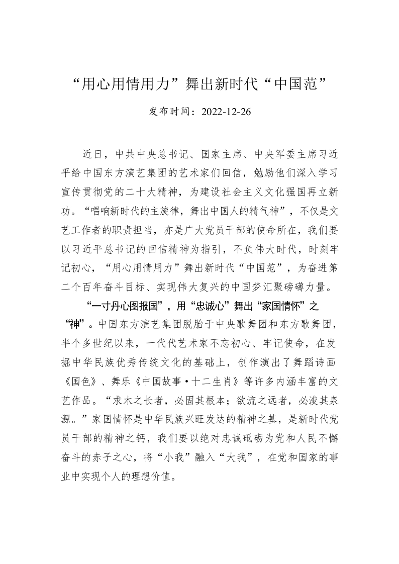 “用心用情用力”舞出新时代“中国范”