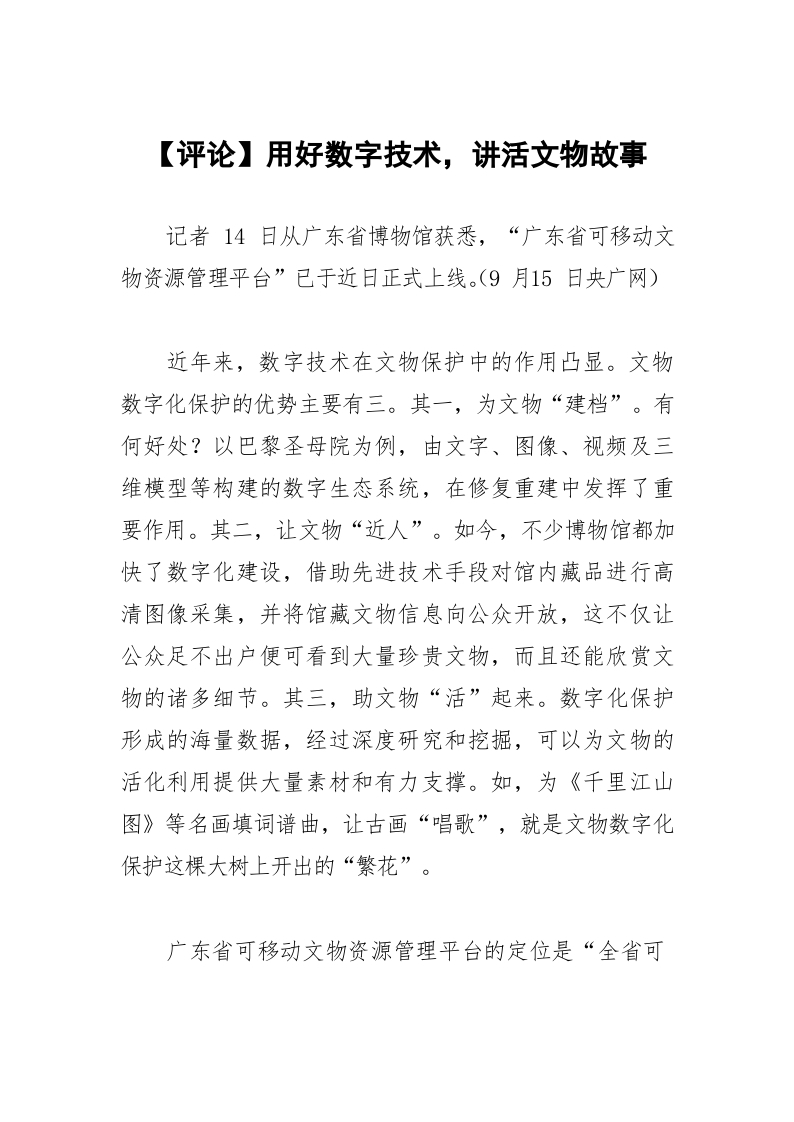/ 【评论】用好数字技术,讲活文物故事
