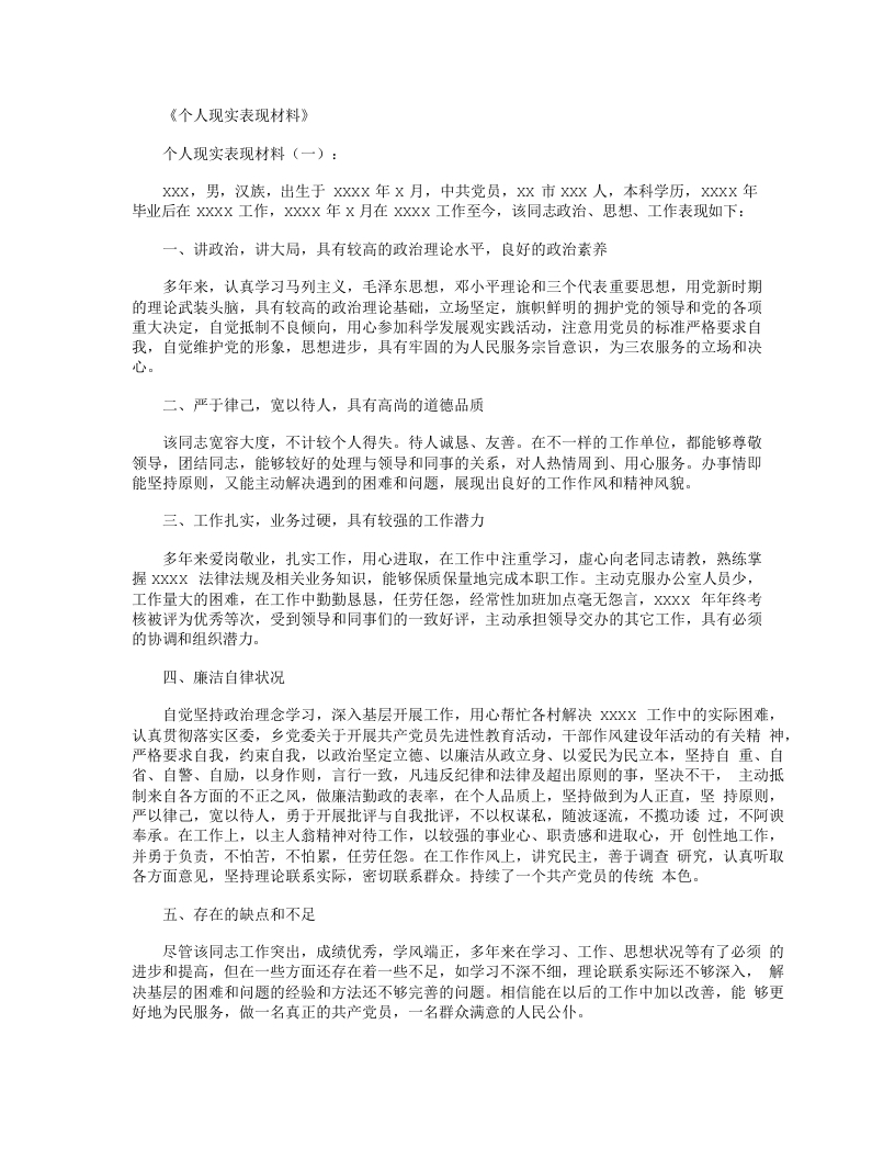 个人现实表现材料
