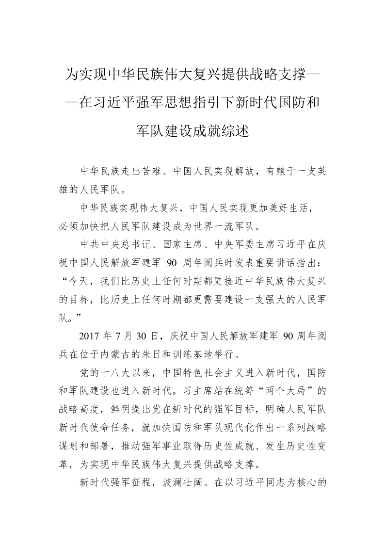 / 为实现中华民族伟大复兴提供战略支撑——在习近平强军思想指引下新时代国防和军队建设成就综述