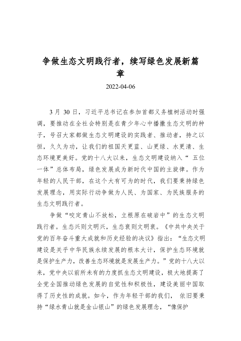 / 争做生态文明践行者,续写绿色发展新篇章
