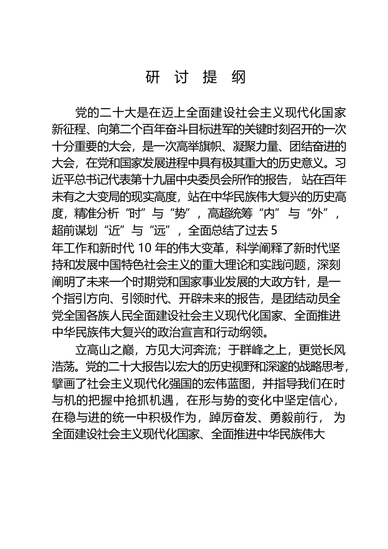 / 二十大会议精神研讨提纲