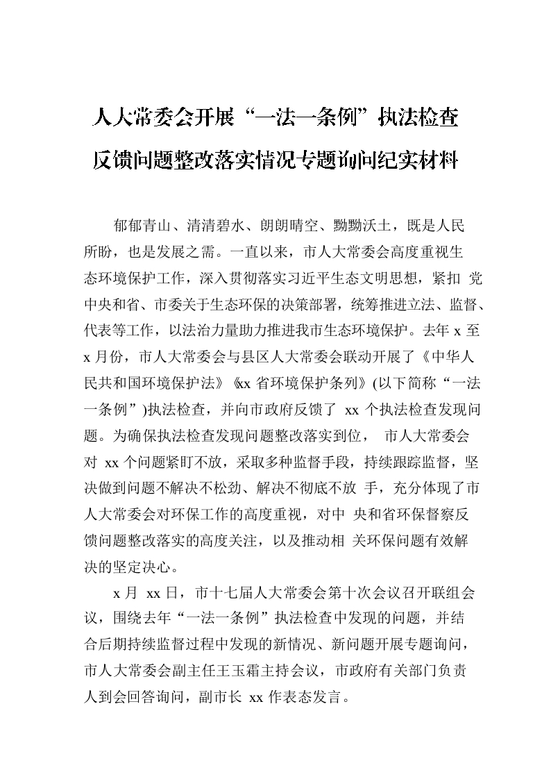 / 人大常委会开展“一法一条例”执法检查反馈问题整改落实情况专题询问纪实材料