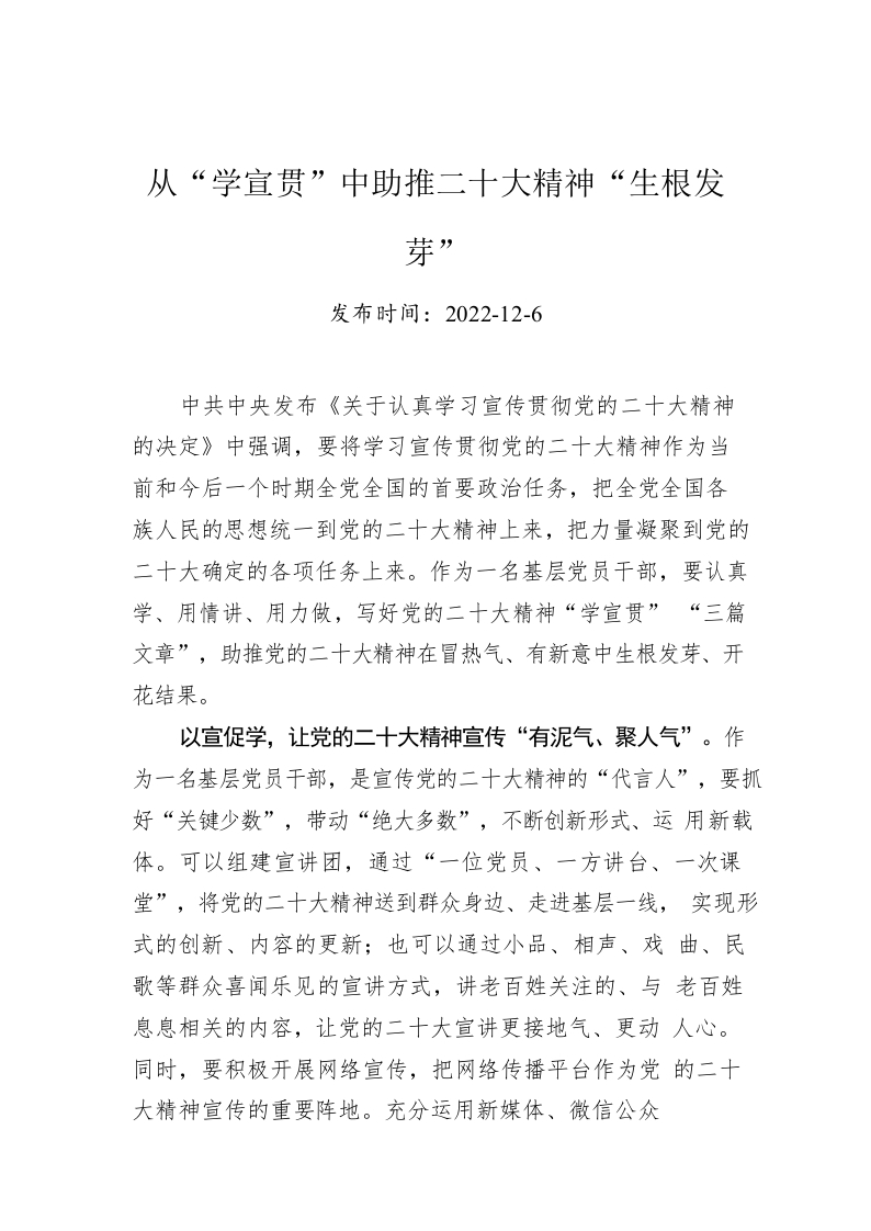 从“学宣贯”中助推二十大精神“生根发芽”