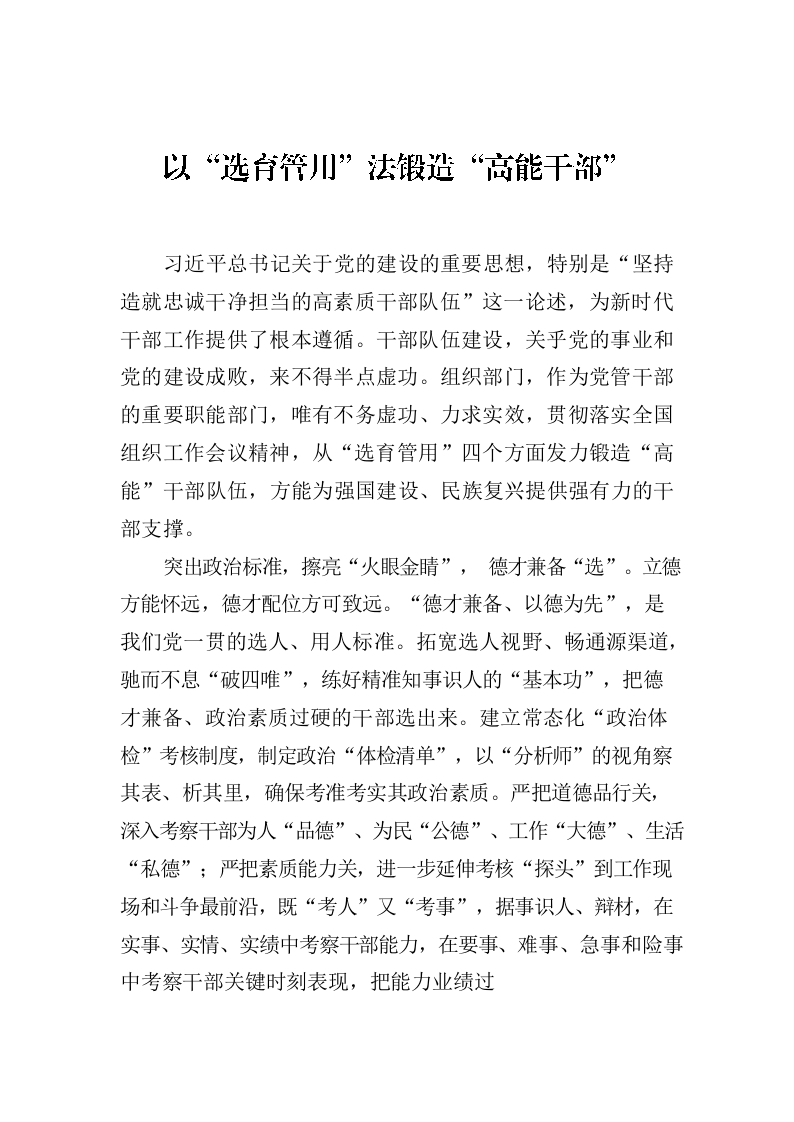 / 以“选育管用”法锻造“高能干部”