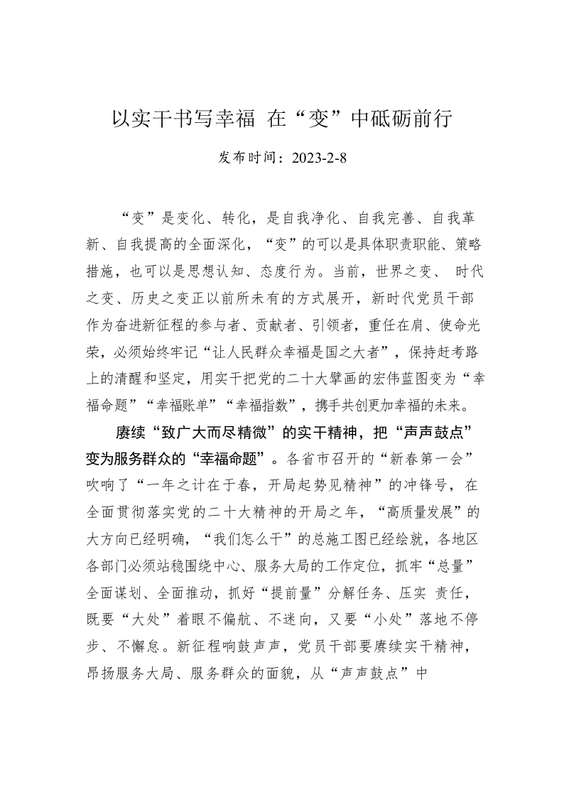 以实干书写幸福 在“变”中砥砺前行