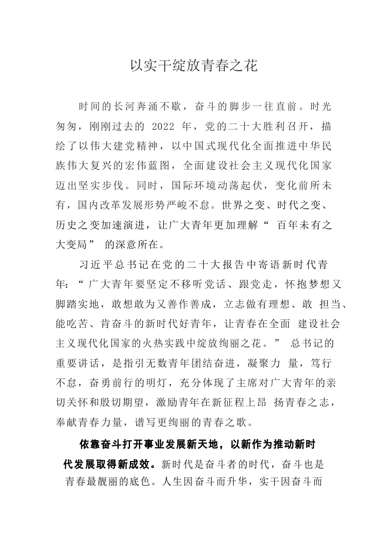 以实干绽放青春之花