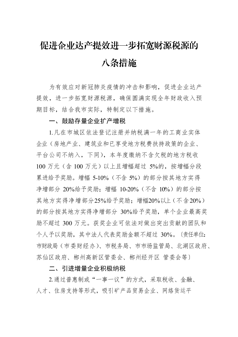 / 促进企业达产提效进一步拓宽财源税源的八条措施