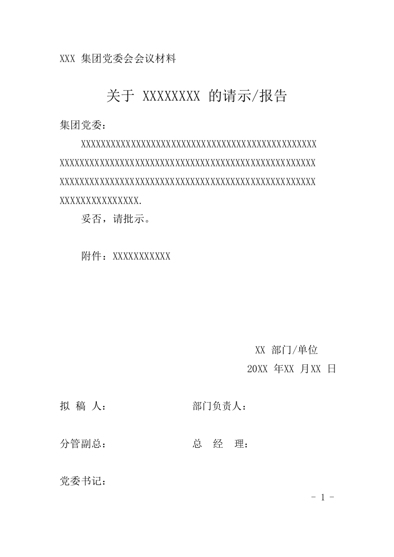 / 党委会上会材料模板