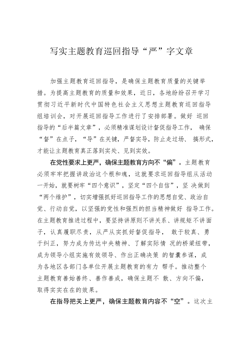 / 写实主题教育巡回指导“严”字文章