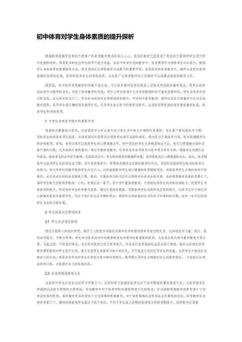 / 初中体育对学生身体素质的提升探析