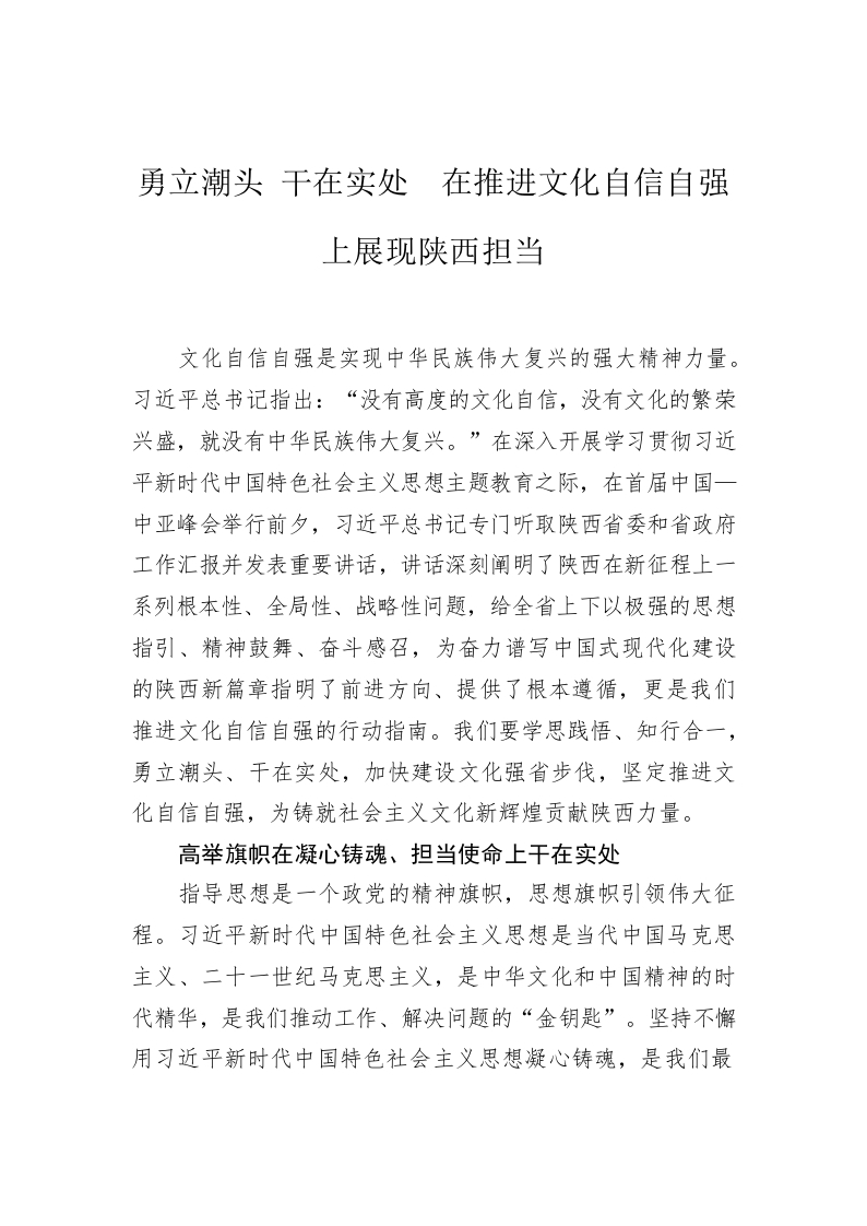 / 勇立潮头 干在实处 在推进文化自信自强上展现陕西担当