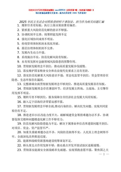 / 第146期(50条)2025年民主生活会对照检查材料干事创业、担当作为相关问题汇编