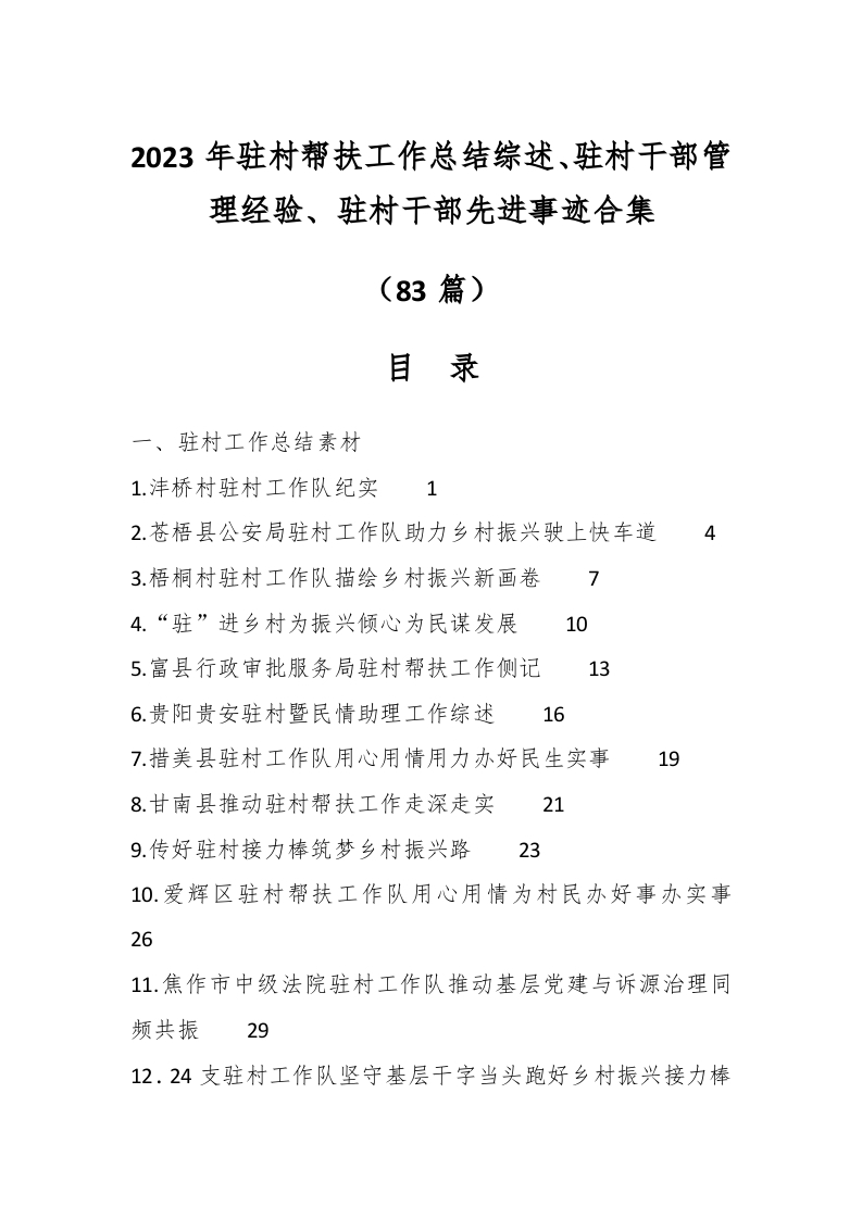 (83篇)2023年驻村帮扶工作总结综述、驻村干部管理经验、驻村干部先进事迹合集