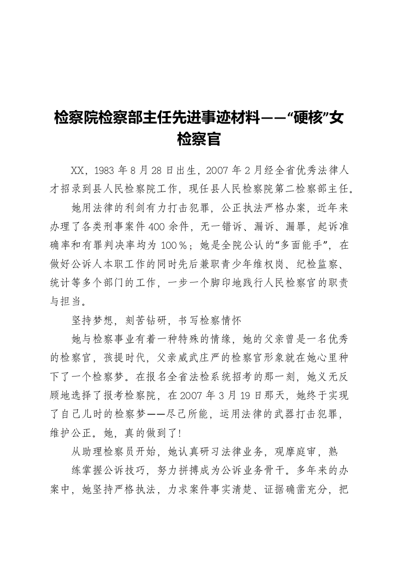 / 检察院检察部主任先进事迹材料——“硬核”女检察官