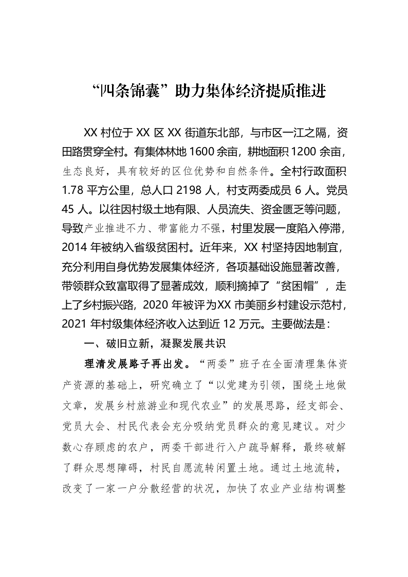 / XX村:“四条锦囊”助力集体经济提质推进