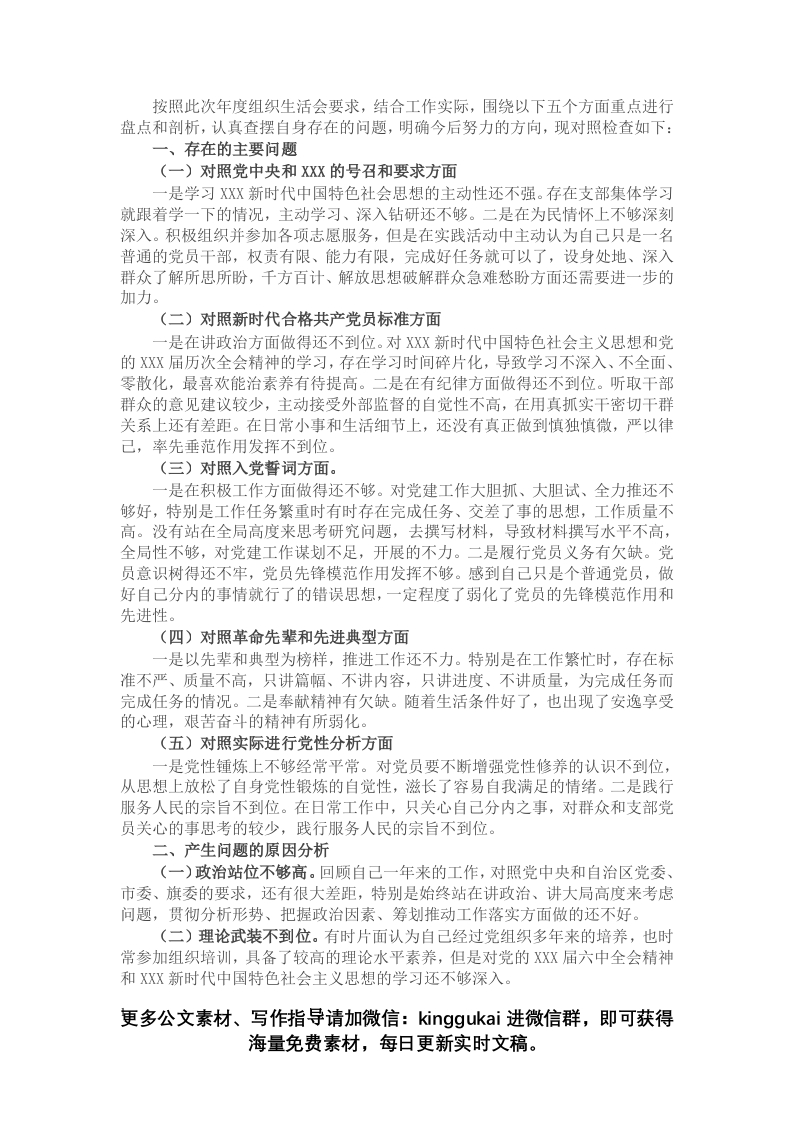 / 2021年度组织生活会个人发言提纲